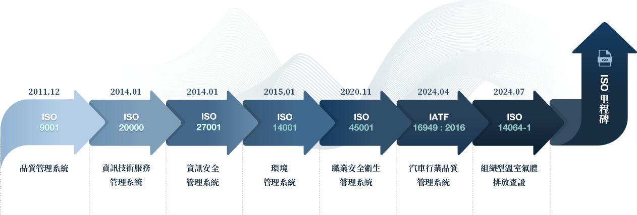 - 2020年11月 通過 ISO 45001 職業安全衛生管理系統
