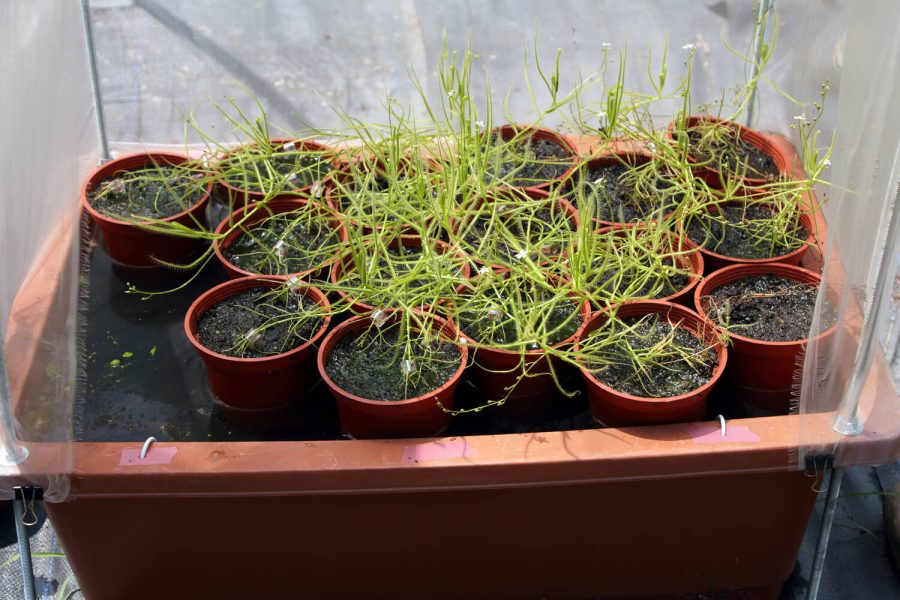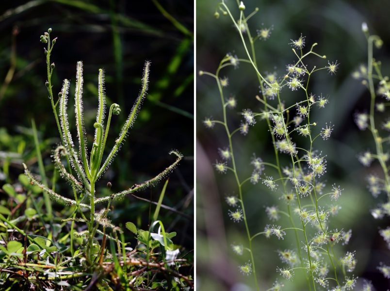 ▍ 蓮花寺濕地內生長的長葉茅膏菜是臺灣最大型的食蟲植物(左)、台灣野外已經滅絕的茅膏菜(右)